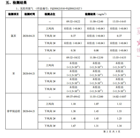 公司2020年4月21日委托山东嘉源检测技术有限公司对vocs进行了检测,检测结果如下图:……